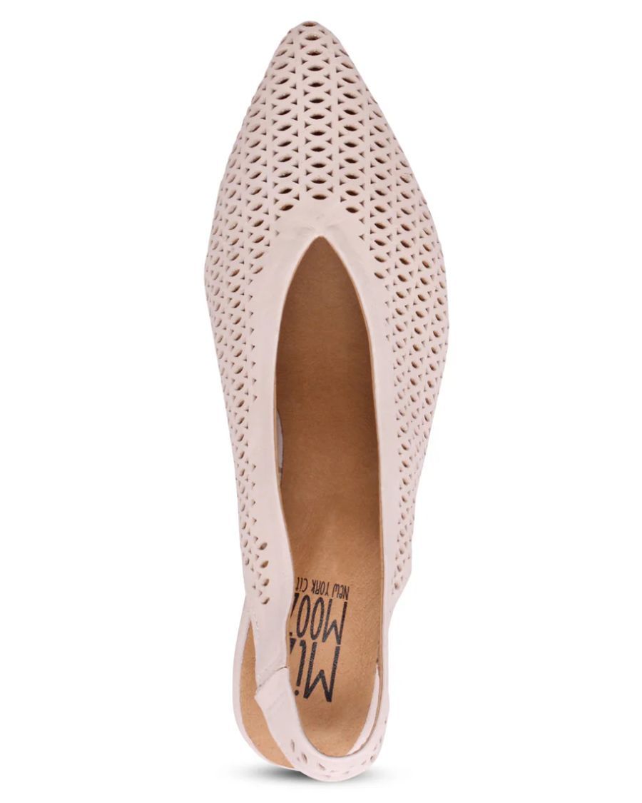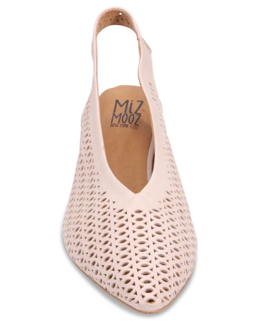 L’escarpin HANSEL de Miz Mooz se distingue par son talon bloc stable et sa bride arrière avec section élastique qui assure un maintien confortable et naturel à chaque pas.