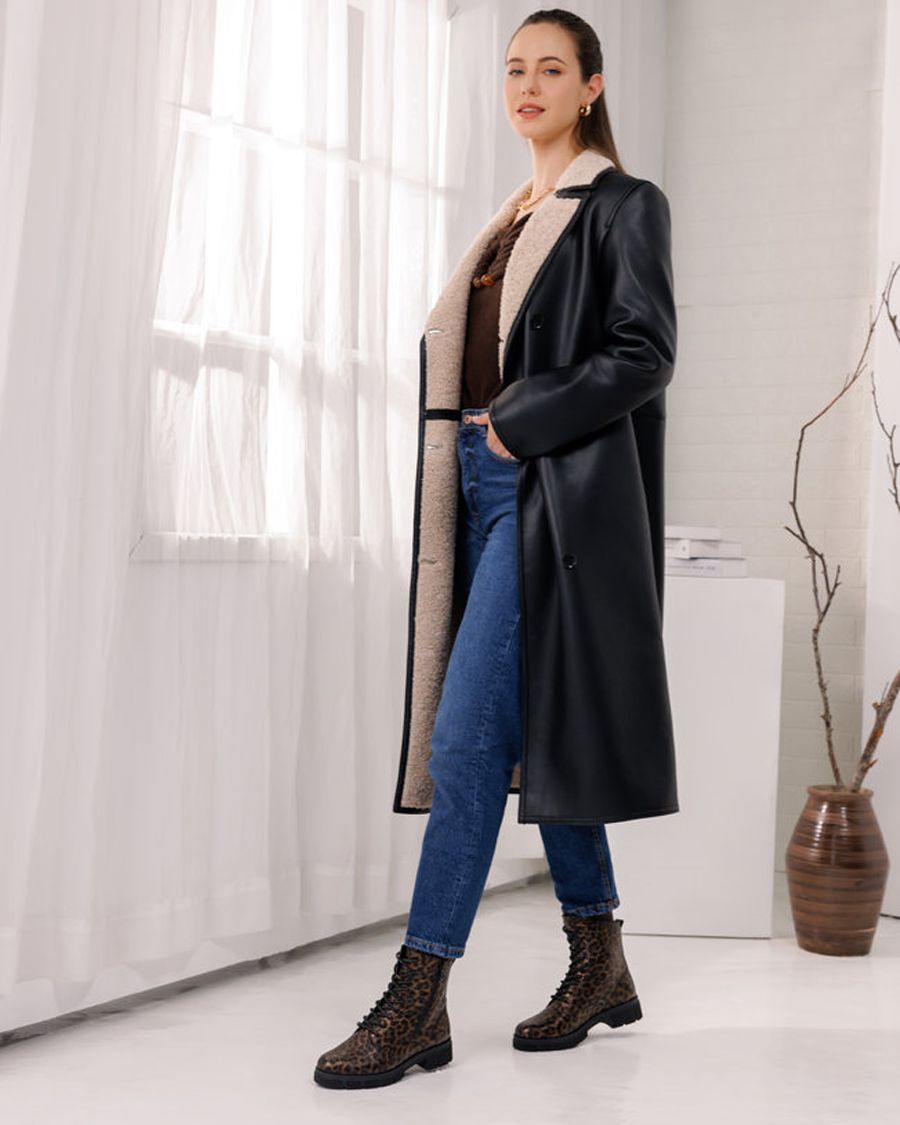 Pensé pour votre quotidien, ce bottillon allie style et fonctionnalité grâce à son mélange de matières, sa fermeture éclair pratique et ses lacets interchangeables. Avec son imprimé léopard original et sa semelle épaisse légèrement crantée, il promet un look affirmé et une marche confortable, même lors de longues journées. Son talon de 3,5 cm offre juste ce qu’il faut de hauteur pour élancer la silhouette sans sacrifier le confort.