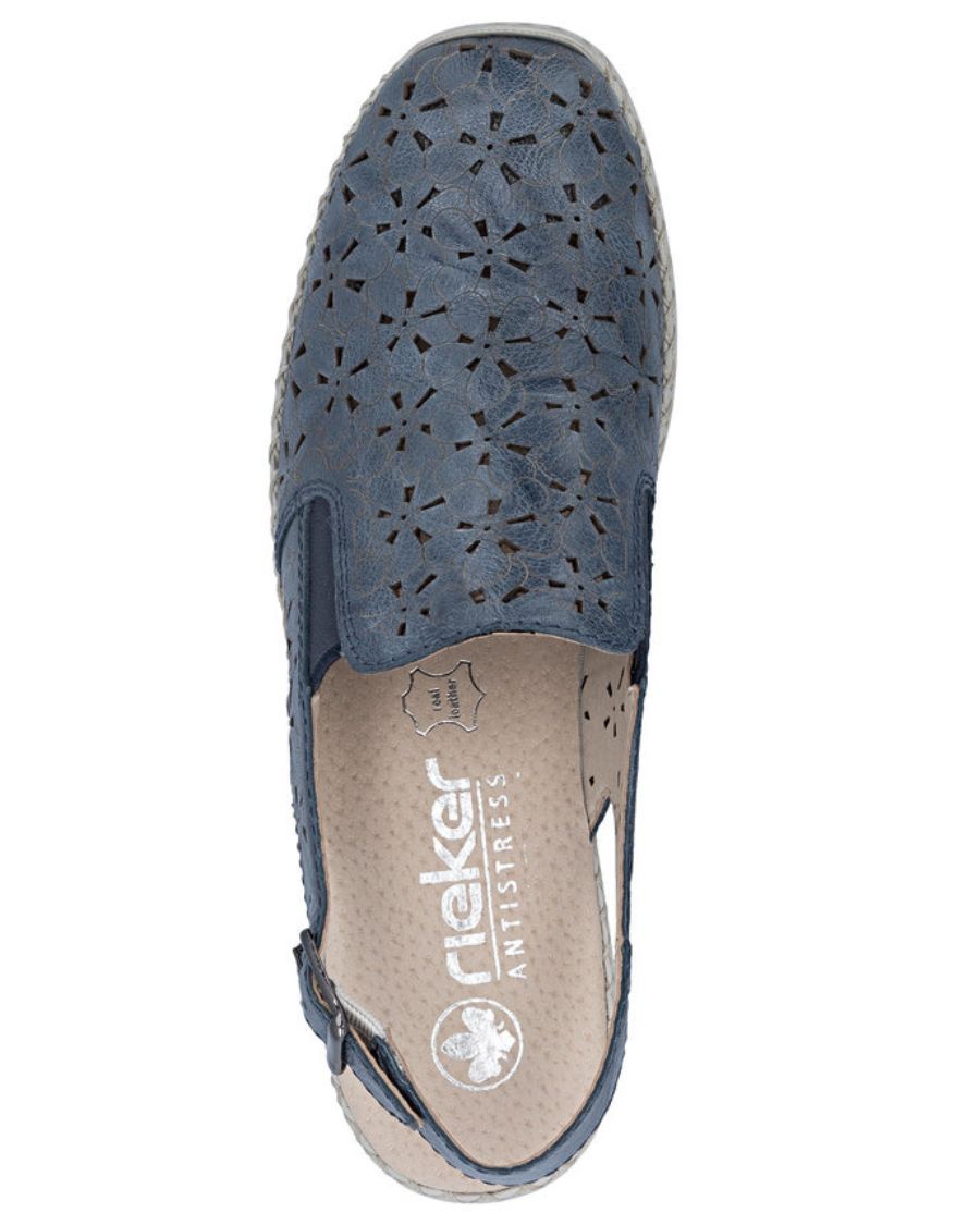Caractéristiques clés de la chaussure d’été pour femme Rieker 41371-12 bleue: